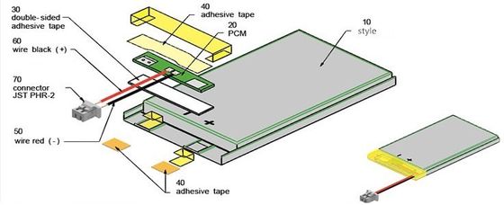 | 553640 | 5.5*36*40mm | 5.7*37*42.5mm | 3.7V 850mAh |